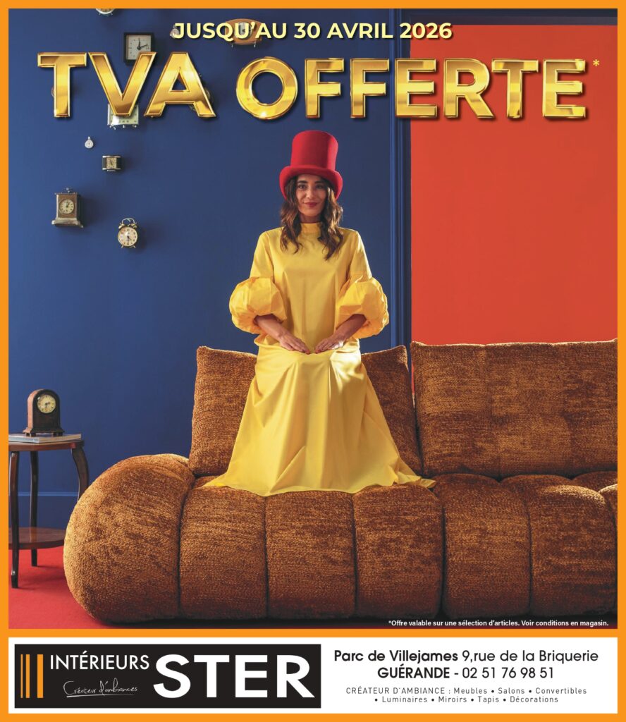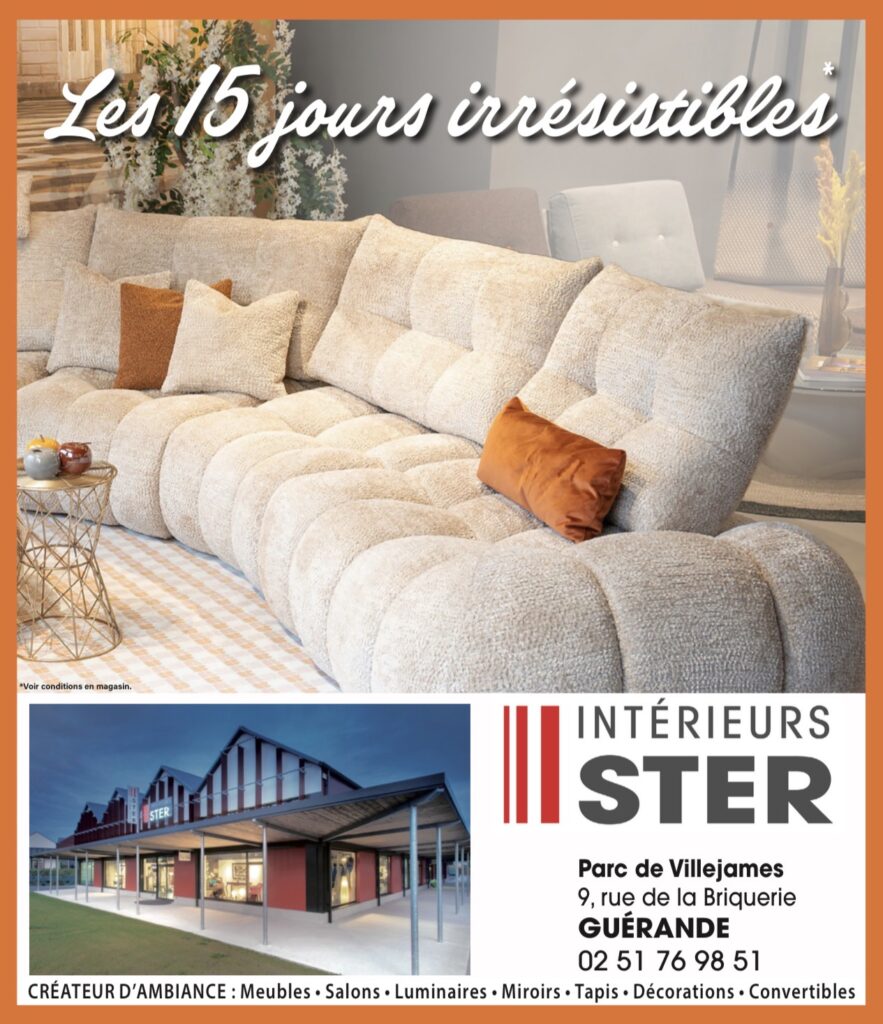 15 % de remise à partir du 06 mars chez Interieurs STER à Guérande! Voir condition de l’offre en magasin.